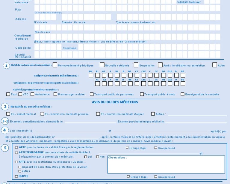 L’examen est réalisé par un médecin agréé. Il comporte généralement des évaluations de la vision et de l’audition, un bilan des fonctions motrices et neurologiques, et une revue des antécédents médicaux et des traitements en cours. Le médecin peut également apprécier l’état psychologique et la capacité à réagir dans des situations de conduite. Des examens complémentaires (test de vue approfondi, bilan cardiologique, etc.) peuvent être prescrits si nécessaire.