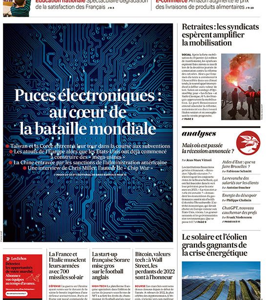 Les Échos sont un quotidien français d’information économique et financière, fondé en 1908 par les frères Robert et Émile Servan-Schreiber. Ce qui a commencé comme un modeste bulletin mensuel s’est transformé au fil des décennies en une référence incontournable pour les décideurs économiques et politiques. Les Echos est le quotidien économique de référence depuis 1908. Grâce à nos 200 journalistes experts en économie, finance, bourse et actualités internationales, nous vous proposons une meilleure compréhension des enjeux en France, en Europe et dans le monde.