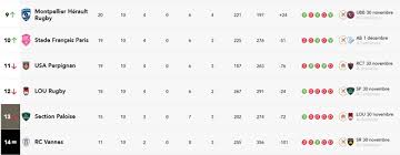 Au cours des dernières semaines, plusieurs matchs clés ont changé la dynamique du championnat. Le 15 octobre 2023, le Stade Toulousain a remporté une victoire décisive contre le Stade Français avec un score de 28-18, consolidant ainsi leur position parmi les leaders du classement. De même, le RC Toulon a joué un rôle déterminant en battant le Castres Olympique 35-25, ce qui a permis à Toulon de grimper au classement.