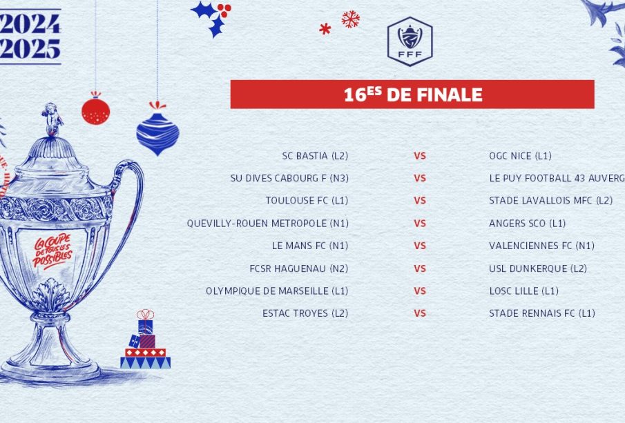 Les rencontres se dérouleront le week-end du 10 janvier. Quinze clubs de Ligue 1 ont décroché leur qualification pour les 16èmes de finale contre huit équipes de Ligue 2, trois de National et National 2, un de National 3 et deux de Régional 1, témoignant de la diversité et de l’attrait de cette Coupe de France 2025-2026. Le double tenant du titre parisien aura l’occasion de poursuivre sa quête d’un troisième sacre consécutif.